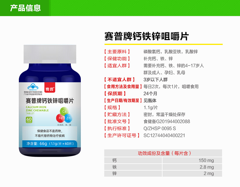 赛普钙铁锌 3瓶